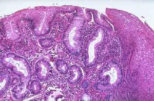 贲门失弛缓症的确切发病机制仍不明确,其基本缺陷是神经肌肉异常。病理所见为食管体部及食管下括约肌均有不同程度的肌肉神经丛病变存在。Auerbach丛内单核细胞浸润到整个神经节细胞为纤维组织所替代。迷走神经有Wallerian变性,背运动核内丧失神经细胞体。食管平滑肌在光镜下正常,但在电镜下表现为微丝丛表面膜脱落及细胞萎缩,但这些变化是原发或继发还不清楚。总之,经组织学、超微结构及药物学研究的结果表示失弛缓症的食管已失神经支配。病变位于脑干、迷走神经纤维、Auerbach神经丛及肌内神经纤维,但不能澄清原发病灶在何处,可能是有弥漫性神经退行性变或向神经毒性物质影响了从脑到肌纤维的所有神经系统。