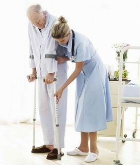 步行:开始将重心移放患腿,健腿向前迈一小步,将重心移放健腿,患腿提起、微屈膝、跨向前、脚跟先着地,然后重心移到整个脚掌上。可在患侧给于支撑,练习熟练后,逐渐减少支持。