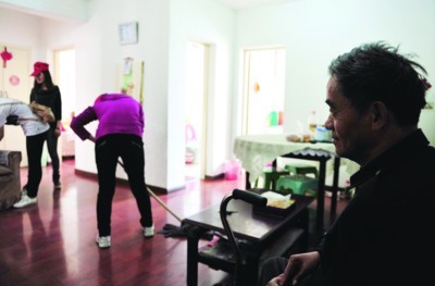 谢奉清老人看着志愿者帮助自己打扫卫生,脸上露出了笑容