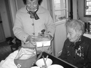 44岁的韩晓明下岗后在社区里经营了一家小饭店,是小本生意,每天中午,不管生意多忙,韩晓明都准时为易家桥新村172幢的何文华准备好午餐,由志愿者夏冠军送到老人家中。韩晓明告诉记者,每天三菜一汤,保证营养搭配。他熟悉老人的口味,不爱荤辣,饭菜要煮的烂一点。
