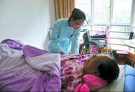 今年85岁的陈女士,患有帕金森病和高血压等,思维反应很迟钝;她老伴90岁,患痛风、智障等,下肢浮肿,生活完全不能自理。因子女都在外地,平时由保姆照顾,无法得到需要的专业医疗护理。居民楼内贴出高龄老人医疗居家护理计划后,老两口的孩子马上为父母报名。经社区卫生服务中心上门评估,二老符合医疗居家护理服务的条件,由专业护理人员制定护理计划:每周为二老各提供2次上门服务,具体内容根据老人身体状况和需求,选择“菜单式”服务。