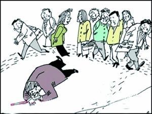 在经过一群推车的人时,82岁的老人摔倒受伤,被推车人群送医,模糊视频下,好心人和肇事者同样模糊不清。