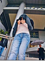 图为受审护工蒙头走出法庭。