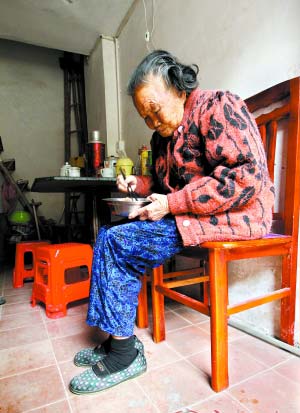 黄阿婆:三餐媳妇送来,但很少说话