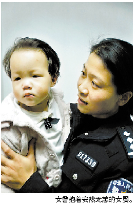 下午6时许,女婴的父母接到湖北亲戚打来的电话后匆匆忙忙赶来海珠交警大队。见到完好无缺的女婴后,年轻的母亲一把把女婴抱了起来,眼泪随即流了下来。