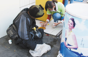 “老人起床后,都有人会帮他把棉被收拾好。然后他就慢慢爬到其它店铺外休息,晚上六七点时又回来。”杨先生说,每天他都会拿拖布将老人要睡的地方拖干净。“是为了让老人睡觉时舒服点,有时我们店还会把自己的早餐分给老人吃。”