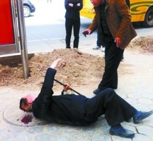 下午3时10分,记者赶至事发现场,此时老人已经离开了。“老人就是在那摔倒的,头都摔破了,看起来挺可怜的!”在附近一名路人的指引下,记者找到了老人摔倒的具体地点:兰州外国语高级中学对面人行道上的一个下水井井盖处,老人摔倒头部被磕破留下的血迹依然清晰可见。