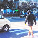 23日市区气温一度低至-9℃,大街上的路人绝大多数都带着棉帽御寒,其中又有部分是与外衣连在一起的帽子。23日中午12时30分许,在江西路与南京路路口,一位头戴连衣棉帽的女士横穿马路,结果因没有注意左侧的来车,差点被撞上,幸亏车主反应迅速,及时制动避免了事故发生。