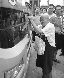 公交卡塞进投币箱,随后发动车辆。老人一路坐到泰州南站下了车。