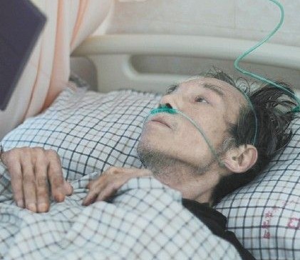 在合肥市三院呼吸科病房,记者看到了吕大爷,他十分瘦弱。