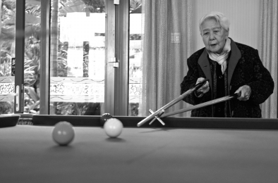 2012年11月,在石景山五星级养老中心寿山福海养老中心里,老人们在打台球。