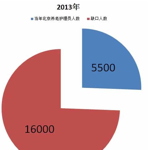 2013年8月,北京市民政局新闻发言人李红兵介绍,截至去年底,北京市400余家养老机构共有养老护理人员5500余人,“目前养老机构内85%护理人员基本实现持证上岗”,“需求应在15000人至16000人左右,尚存在较大缺口”。