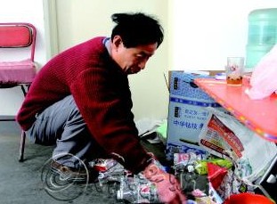 刘培根也以实际行动,做着力所能及的事情回报社会和好心人。在刘培根的家里,记者发现了不少零乱的矿泉水瓶和废报纸,天气好时,刘培根就会出门捡垃圾补贴家用。“我想捡些矿泉水瓶卖点钱,等新年的时候给帮助过我的好心人送春联和福字。”
