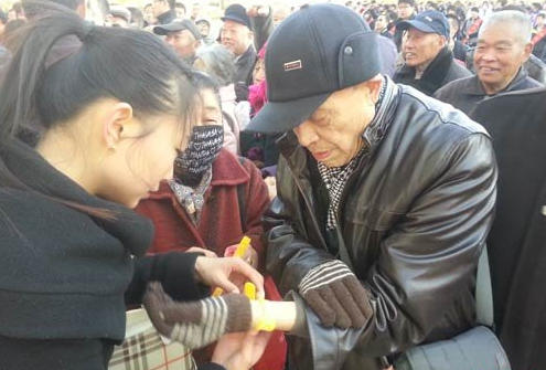 “如果你在大街上看到佩戴‘黄手环’的落单老人,请注意,他可能需要帮助。在他处于危险或茫然中时,请查看他的手环,联系他的家人,送他平安回家。”11月27日上午,在郑州市绿城广场进行“关爱失智老人,免费发放黄手带”活动。