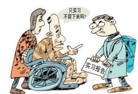 格日玛所实习的岗位算轻松的,她告诉记者,有的同学负责不能自理的老人,穿衣、喂饭、洗澡等事都要做。对此,乌鲁木齐职业大学老年服务与管理专业大三学生许佰芬表示,一出来就管理不太可能,已做好了从基层服务开始的准备,但她和格日玛有同样的担忧,行业还不成熟、收入还不如酒店服务员、家人又不支持,前途很迷茫。