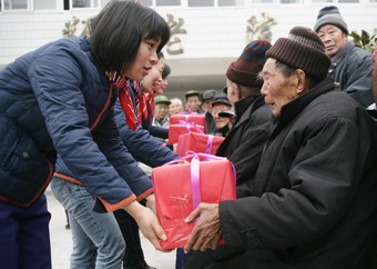 活动现场,卫生局窗口志愿者免费为老人们测量血压、血糖,讲解健康保健、疾病防治和生活中应注意的细节事项,并指导生病的老人们合理用药。民政局窗口的服务人员为老人们免费办理了12个老年优待证。当得知87岁的倪大娘因为生病住在万滩镇卫生院,志愿者们便带上营养品一起来到镇卫生院看望老人(如图)。