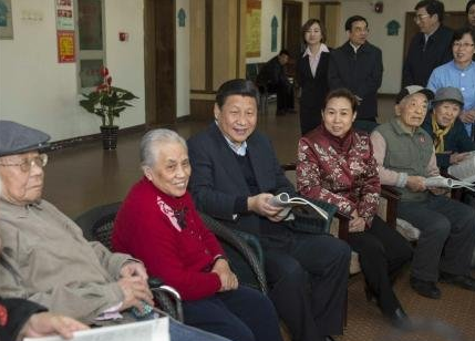 在四季青敬老院,正在开展读书读报活动的老年人见到总书记来了,十分激动,热情邀请总书记听他们诵读《养生歌》。习近平认真听完后,同老人们交流心得。他说,活到老,学到老。保持健康心态和身体,就要靠这样积极进取的精神。从你们的读书活动中我得到很多启示。