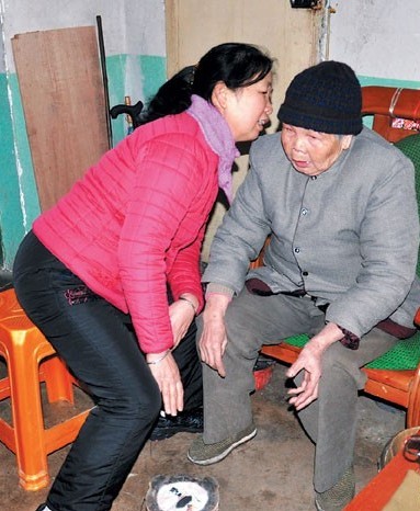 陈翠英老人一见到黄秀莲,赶紧让侄女搬凳子给黄秀莲坐在火炉边,刚一落座就握着黄秀莲的手往火炉上烤火,并不时给她搓手取暖。“现在老人耳朵有点聋,得喊话才能听到。”黄秀莲说,照顾老人久了,觉得老人就像自己的母亲。