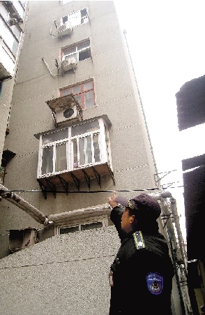 “人就是从那儿掉下来的,中间还隔着一道硬实的墙壁呀!”花园路巡防队员王伟指着四楼边上一扇打开的窗户这样说道。