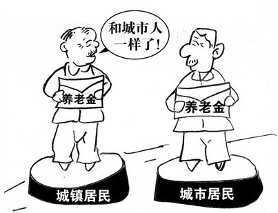 今年上半年两项保险制度合并实施后,参保农村居民和城镇居民的养老保险待遇将实现同步发放、同步增长,意味着向缩小城乡差距、最终破除城乡二元结构迈出重要的一步。