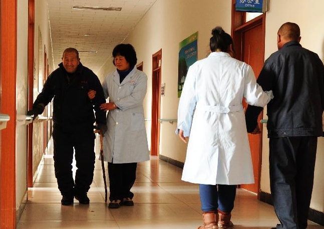 12月6日,武强县朗瑞尔老年服务中心护工帮助行动不便的老人出行。位于河北省武强县马头村的朗瑞尔老年服务中心和医疗中心是一家医疗与养老结合的民办非营利养老机构。老年服务中心投资1000多万元,设计床位320张,一期工程2012年完工,可容纳180位老人入住;医疗中心按照二级甲等医院的标准建设,设有检验、CT室、放射等6个医技科室和急诊、内科、外科、骨科、眼科等10个临床科室。在这里,护理人员随时掌握每位老人的身体情况,老人有病不用出院门就能就诊。近年来,河北省武强县大力引导支持民间资本在农村建立“医养结合”模式的养老院,预计到2014年,农村“医养结合”型养老院床位将达到500张。