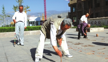以水为墨,拿地当纸,巨笔一挥,龙飞凤舞。这是怎样一个大气魄?在红古区的步行街上,每天早晨总能看到这样一幅场景:三五成群的老人们手握特制毛笔,神情凝重地书写着“地书”。记者采访了一位老人后得知,练习“地书”不但在当地有着广泛的群众基础,对于老年人来说,还有着许多不为人知的益处。