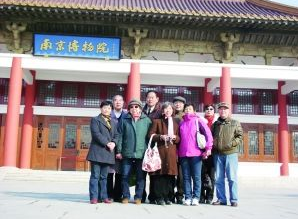 老友俱乐部写作班成员在南博采风合影。左二为管培峰,右一为施顺才。