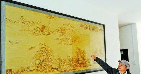 这幅大型山水烙画长2.24米、宽1.2米,他花了两个多月才完成