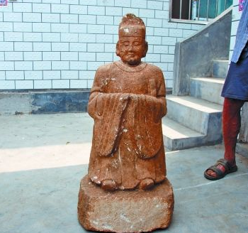 在南召县文物管理所,记者见到了这尊官员模样的石人雕像,“石人”头戴官帽,身着官服,手中抱着朝见君王时的笏板。南召县文物管理所所长黄海说,从造型来看,这尊“石人”雕像身上“穿”的应该是明代的官服,头上“戴”的是明代的官帽,初步可以推测出这尊石像应该是后人为了纪念这个人而雕刻的,有可能是庙或者是祠堂供奉的石像。