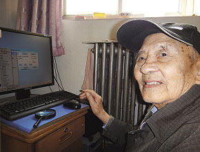 不久前,老人花钱买的第一台电脑在几年的辛勤工作后寿终正寝,孩子们又为他置办了一台新电脑,这个新家伙十分得老人的欢心。“现在眼神儿不好了,看电脑要拿着放大镜,上网的次数少了,但是还是想靠着它让自己多动动脑子,别和世界脱节。”