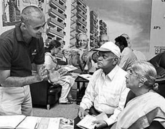 房产推销人员向一对老年夫妻推销公寓