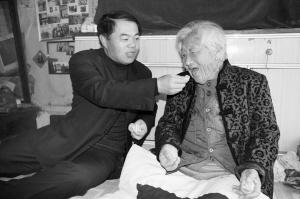 她身体不好,经常住院,我就去医院护理,端屎接尿的。平时得给老人洗头、洗脚,让我媳妇儿给她洗澡,夏天的时候带老人出去看看外面的世界。