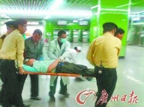 据地铁工作人员讲述:“老人有点重,救护车上的两名工作人员不够力气扶他上担架。后来,几个正在吃午饭的站务人员都丢下碗筷,跑了出来。最后,六个大男孩一起出力,把老人抬上担架,送上出入口外的救护车。”