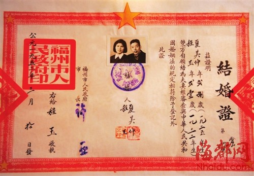 “60年前,结婚当天,我还在上班。晚上在礼堂发发喜点,婚就算结了。”程玉说,他俩以前都在福州港务局工作,当时是局长做的媒。夏老是贫苦长工家庭出生,从部队转业到地方,也没有多少家当。结婚新床就是两块门板、两条板凳,铺盖还是他从部队带回来的行军被。但老夏为人踏实,可以托付终身,所以没有抱怨过。