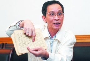 一中校友会秘书长钟汉邦拿着学生名册向记者介绍情况。 信息时报记者 叶伟报 摄