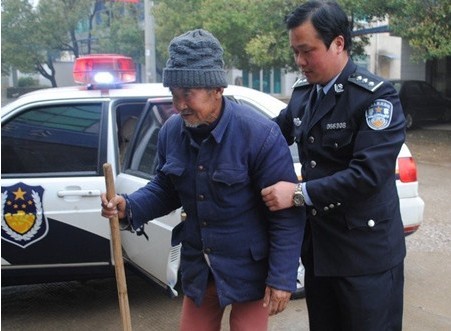 民警立即下车,对老人进行询问,但老人说的话民警听不懂。由于当时正下着雨,民警便将老人带回大队,端上热腾腾的粥和包子馒头给老人吃,老人随即大口吃了起来。因为老人不会说普通话,经过艰难的交流,民警最终得知老人是贵州省铜仁市德江县人,家中有一个儿子。