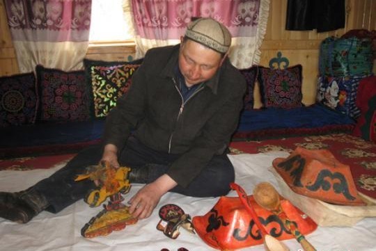 78岁的哈萨克族老人马吾提别克是当地一名乡村退休教师。30多年来,他精心收集各种民间文物藏品达100多种。