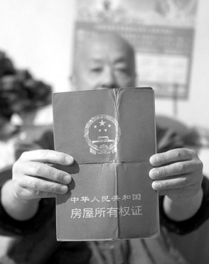 从中间拦腰一折,再从右边掀起4分之一,红色的皮质封面并不听话,杨德志使劲一压——他满意了,房产证被折成了和户口本大小相仿的模样。从此,他把它封进塑料袋,揣进兜里。