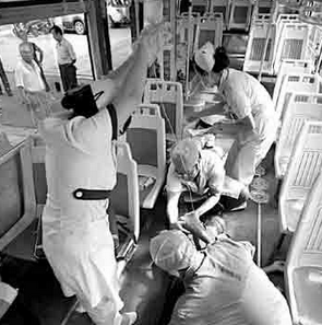 老人上车后被让到座椅上,但刚行驶了三站地,其中一位老人忽然晕了过去,身边两位老人急忙拍打晕倒老人,但任凭怎么拍打,老人仍没知觉,而且更加严重,已经伸出了舌头。