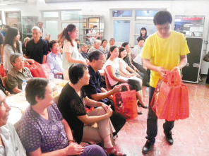 老人当起了“一日儿女”,和老人们一起唱歌、跳舞,让老人们在即将到来的中秋节中不再感到孤单。