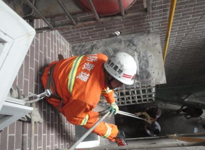 为避免出现意外,救援人员决定下到老人所在位置,然后将其转移到安全地带。但问题随之而来,三楼和二楼的窗户都十分狭小,要将老人毫发无损地拉倒屋内有一定的难度。
