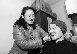 尚晓云还学了不少为老人服务的技能,晚上常给老人梳头、敲背、烫脚。最近,老人眼睛查出有白内障,她每天早晚为老人点眼药水、涂眼药膏,督查老人吃药,一点都不含糊。