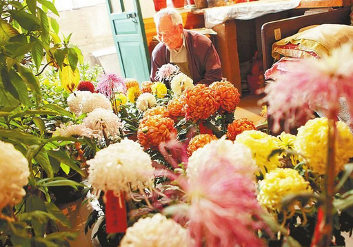 每年菊花盛开的时节,李景林老人都会举办菊花展,地点在自己小院中,这一坚持就是9年。李景林望着朵朵绽放的名优菊花,喜在心头。