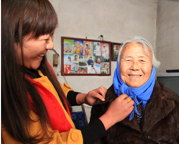 尚村镇柳科村82岁的刘素琴老人,穿上送来的貂皮大衣,高兴地说:“没想到这辈子,还能穿上万数块钱的裘皮衣裳,我这是哪辈子修来的福啊,你们大伙儿都来照顾我。”了解中大家得知,老人原来是桑园村人,年轻时嫁到柳科村,孩子夭折了,后来老伴儿患脑血栓半身不遂,不能自理,她整整伺候20多年直到老伴儿前年去世,累得腰肌劳损严重变形。虽说村里给她解决了农村低保,但还是有很多实际困难。援老群的成员“晴天”将她的情况提供给群里讨论,大家决定将她列为关爱对象。