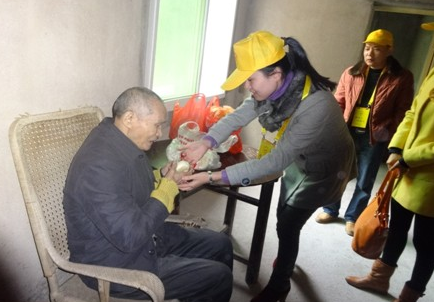王细堂老人今年已经73岁高龄,双目失明,平时一个人居住。志愿者们给老人带去了棉衣、水果、饼干等慰问品。并且在出发前得知老人平时因为失明,无法自己做饭,都是靠牛奶饼干充饥后,志愿者们还特地去买了热腾腾的包子和馒头带给老人。