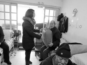4日,辖区一家企业的负责人了解到养老院的情况后,特意为老人们准备了十床棉被,作为新年贺礼,还陪老人们聊天,帮助养老院打扫卫生,让老人们感受到了社会的温暖。
