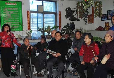 随后由春辉养老院老年歌唱团演唱了歌曲、表演了歌舞;有的老人亲属也主动上台表演节目。下午4点联欢会在老人们欢快的笑声中结束。