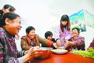 们和护理人员一起包饺子。据悉,镇海社区60岁以上的老人每月平均可领取500元以上的养老金,养老服务站还为老人们提供营养餐、上门问诊等服务。