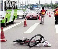 2012年12月31日16时许,一个十七八岁的小伙骑着一辆白色山地自行车从长江路路口疾行而过。此时,一位正准备过马路的老人被这辆疾行而来的自行车撞倒,头部磕到路边的道牙石上,鲜血直流。