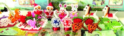 说起和手工结缘,王香保笑着说,那完全是一次偶然。事情还得从2008年说起,王香保带着小孙子上街采购,买了不少珠编的十二生肖,十分讨小孙子的欢喜。回家后,王香保揣摩着这珠编玩具,她琢磨着,要是自己学会了,孙子喜欢什么不就可以编什么么,还能给自己的退休生活增添不少乐趣。主意已定,王香保很快付诸实践。